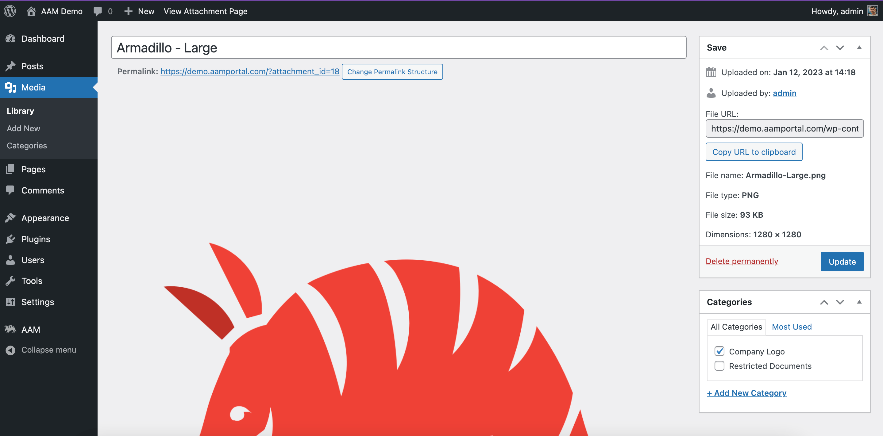 The "Complete Package" add-on introduces a valuable feature called Media Categories into the AAM (Advanced Access Manager) settings. Once enabled, you'll notice the addition of the "Categories" metabox when editing any media item.